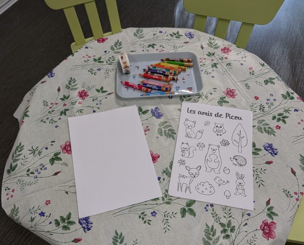 Les enfants ont participé à un atelier de coloriage intitulé “Les amis de Picou”. Munis de crayons et de gommettes représentant les animaux de la forêt, ils ont donné vie à l’univers de notre petit hérisson.