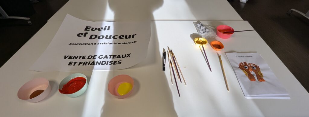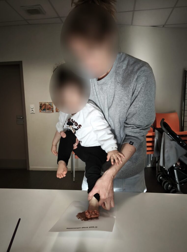 La créativité s’est poursuivie avec un atelier d’empreintes de pieds : les enfants ont réalisé un adorable hibou, en utilisant leurs petits pieds. Un moment amusant qui a beaucoup fait rire, tout en permettant de stimuler la motricité, de prendre conscience de son corps et de laisser une trace unique de soi à travers l’art.