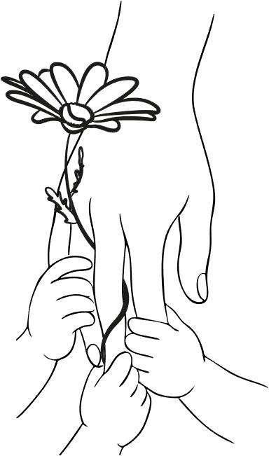 Iconographie : une main d’adulte dont un doigt est tenu par une main d’enfant, d’où poussent une fleur