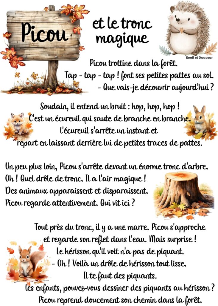 Ce matin, les enfants ont retrouvé avec joie Picou le hérisson, leur fidèle compagnon de nos aventures en forêt ! Pour cette deuxième séance autour du thème de la forêt, l’ambiance était douce, sensorielle et pleine de découvertes. Entre histoires, créations, expériences sensorielles et moments partagés, cette matinée a encore une fois permis d’éveiller tous les sens et de favoriser de beaux apprentissages.