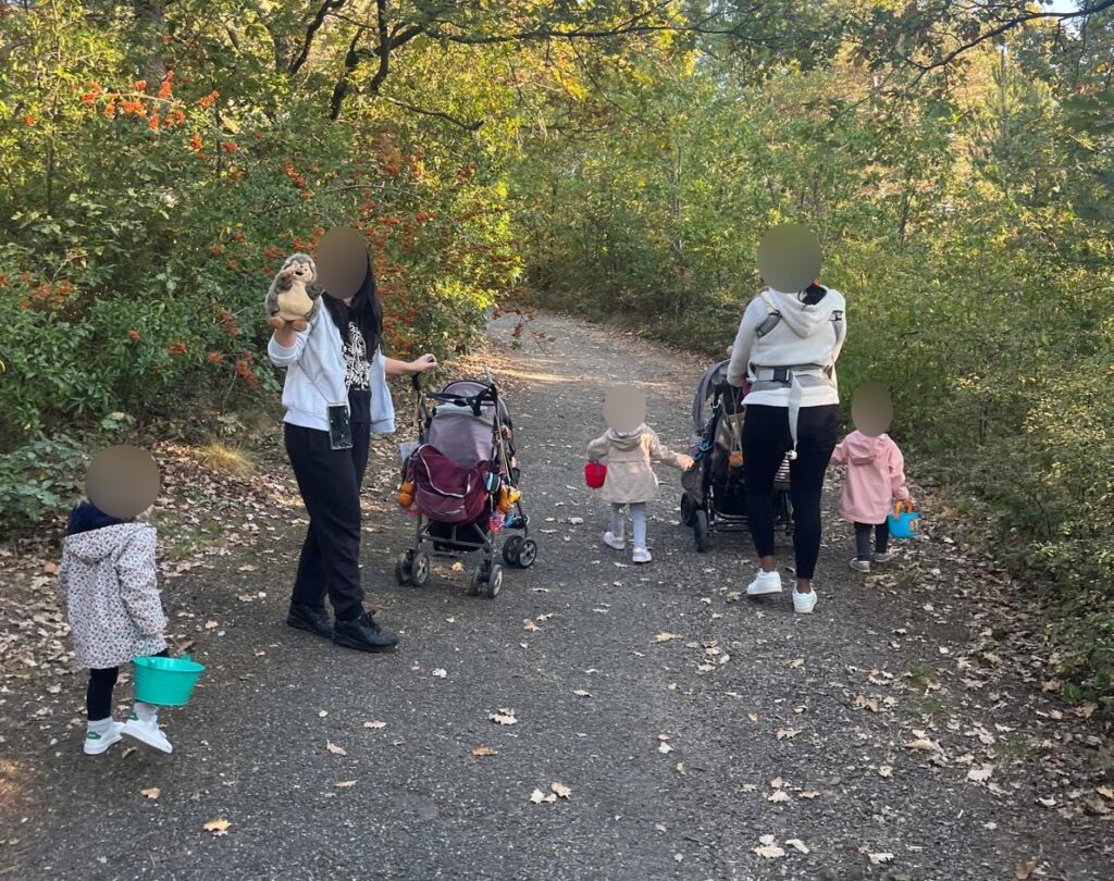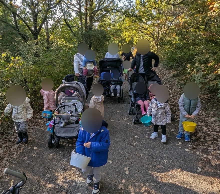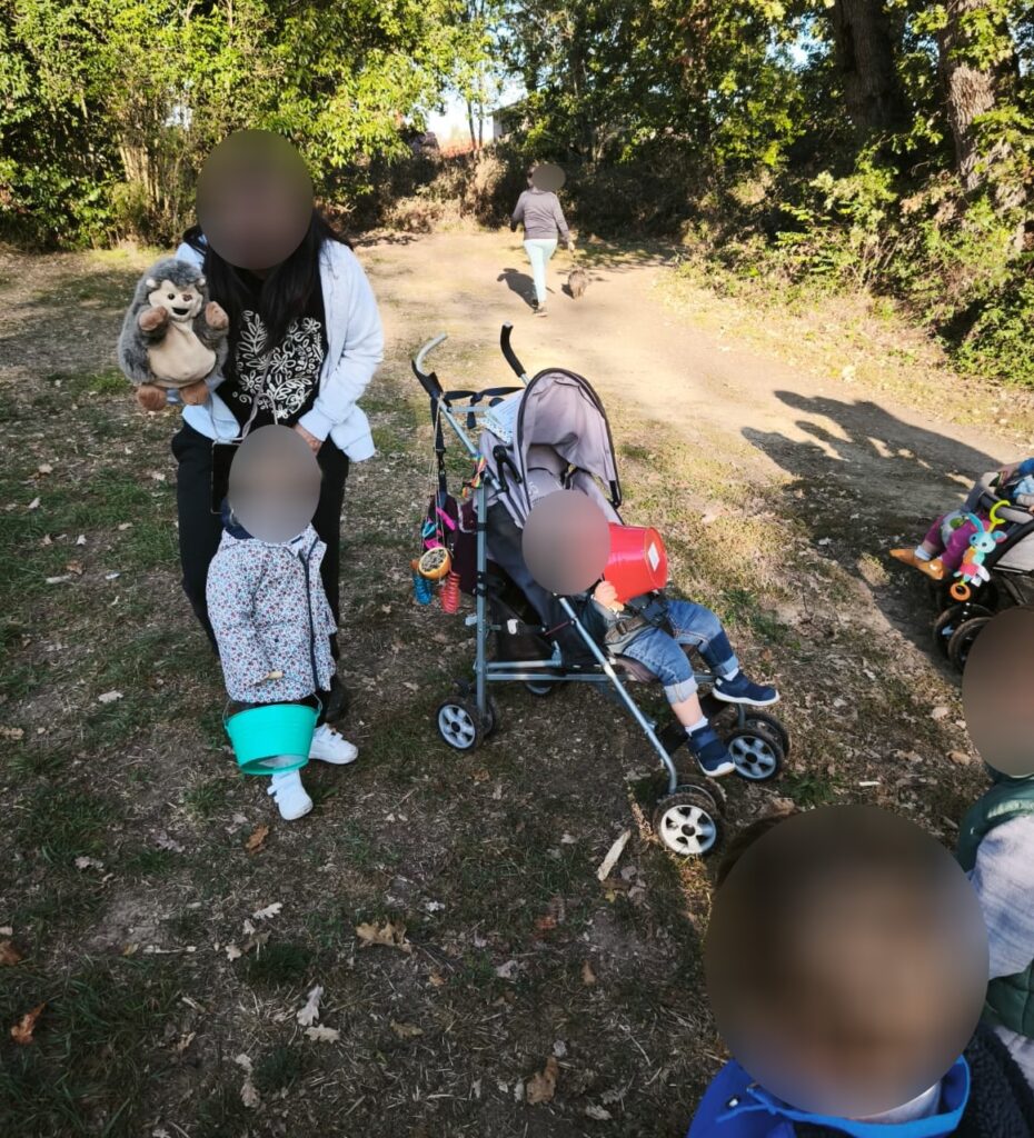 Nous nous sommes retrouvés à l’entrée du bois pour commencer la matinée avec notre chanson du bonjour. Ce petit rituel aide les enfants à se repérer dans le temps, à se sentir en confiance et à développer le plaisir d’être ensemble.