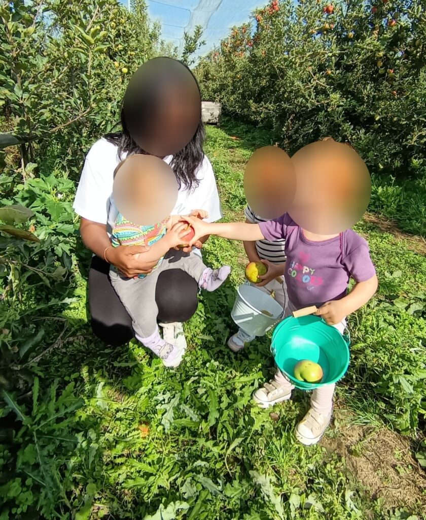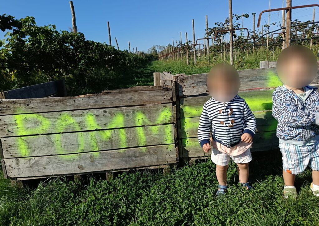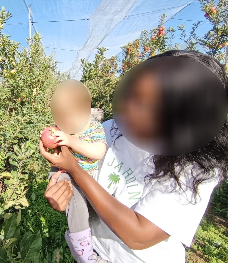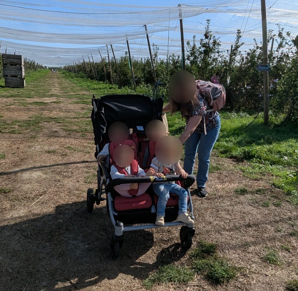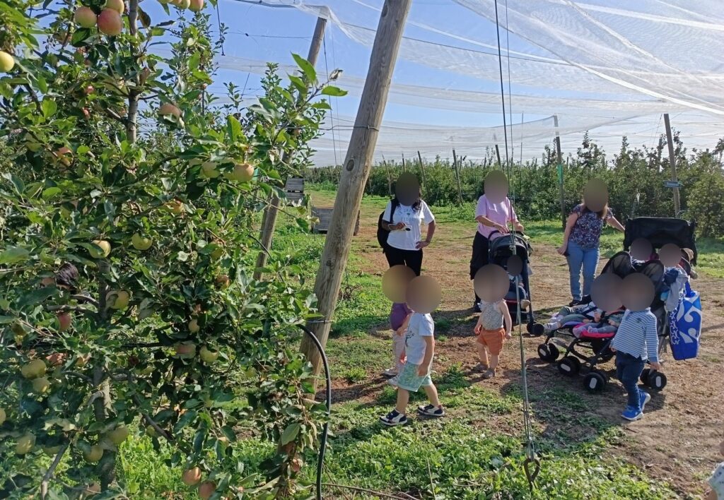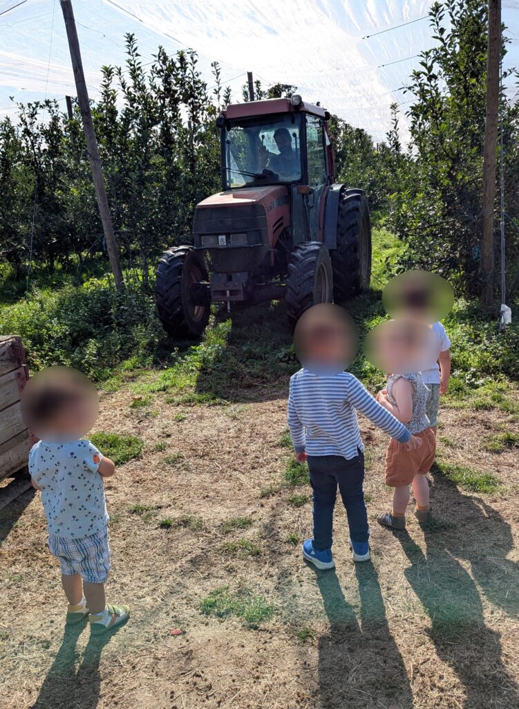 Maintenant il faut arpenter le verger pour aller à la cueillette. Excellent pour la découverte du monde naturel, et la stimulation sensorielle.