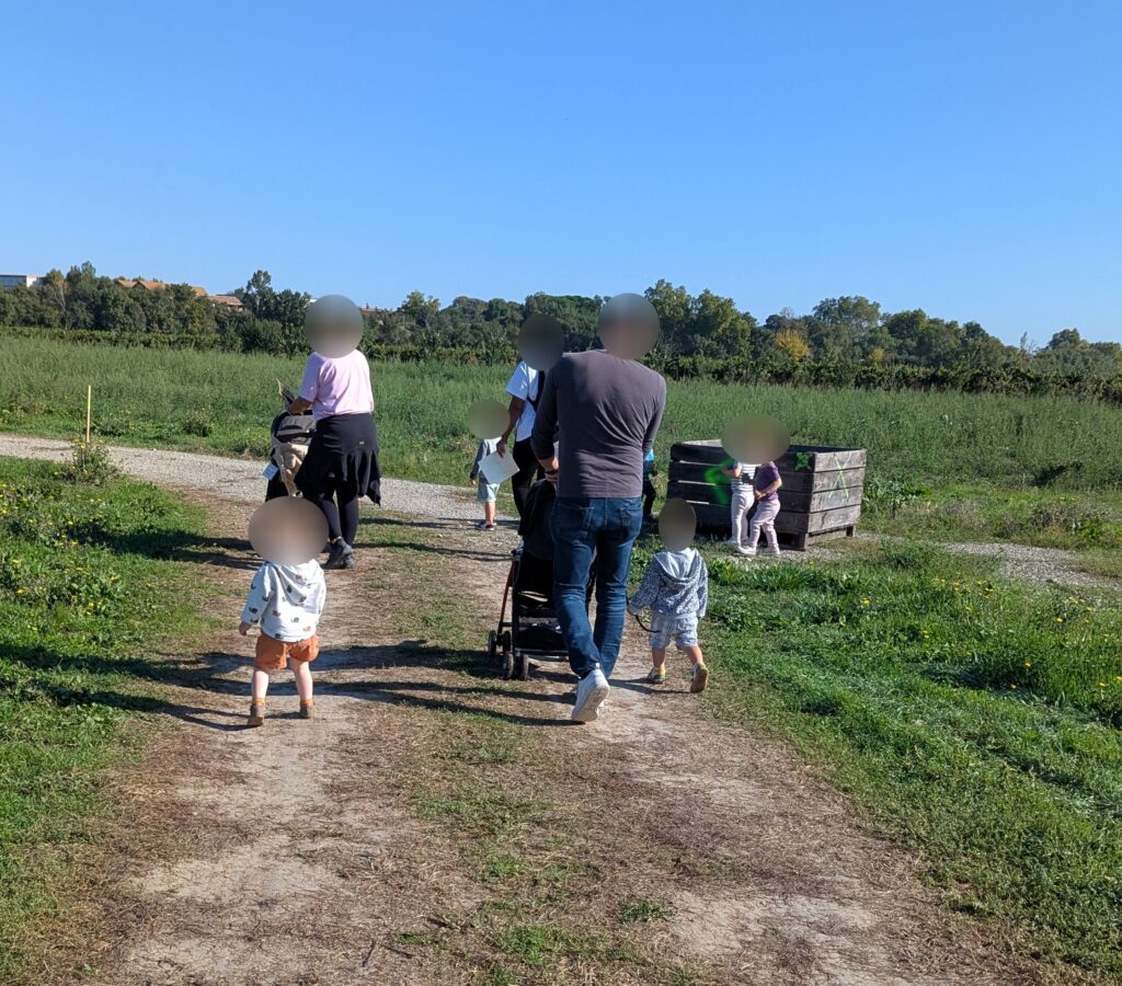 Aujourd’hui, jeudi 18 septembre 2025, nous sommes allés au Verger de Candie. Nous nous sommes retrouvés pour nous dire bonjour grâce à la petite chanson « pour te dire bonjour ».