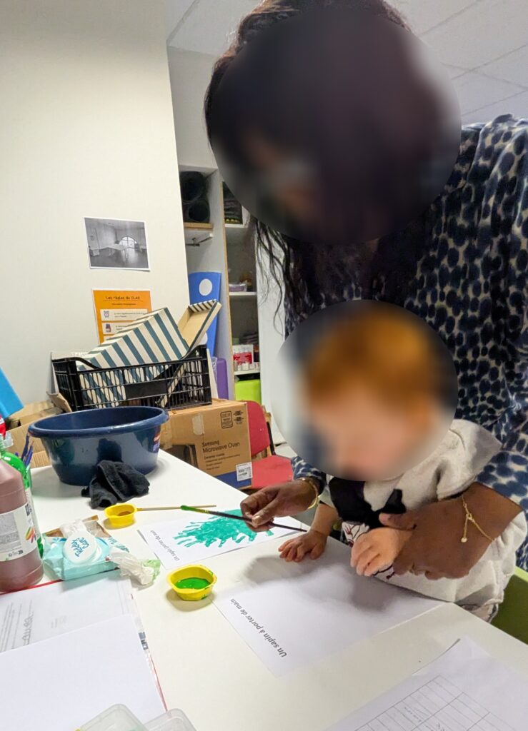 Comme à chaque atelier, la matinée a commencé par un temps pour se dire bonjour. Ce moment de transition est essentiel pour les tout-petits : il les aide à prendre leurs repères, à observer les autres enfants et à entrer progressivement dans la dynamique du groupe, tout en favorisant le langage et les interactions sociales.